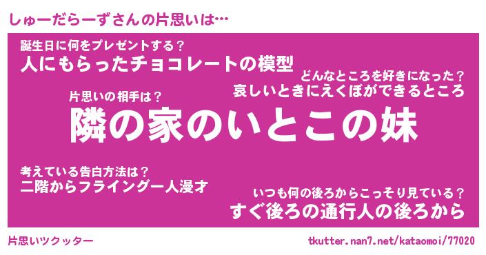 | ヘコむあだ名 | 『しゅにゅー』『酢こんぶ』『しゅを』 |