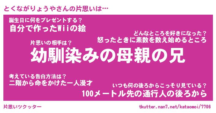 | 男性向けラノベタイトル風あだ名 | 『とくながりょうやの憂鬱』 |
