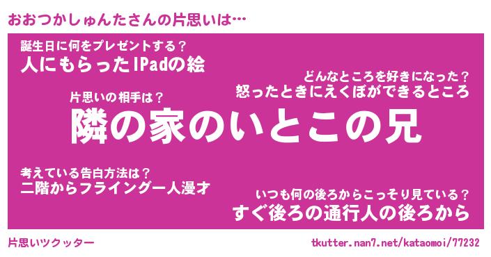 | 男性向けラノベタイトル風あだ名 | 『おおつかしゅんたの憂鬱』 |
