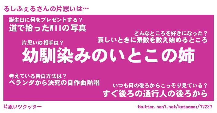 | ヘコむあだ名 | 『るしもー』『豆乳』『るしっぺ』 |