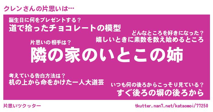| 男性向けラノベタイトル風あだ名 | 『クレンの憂鬱』 |