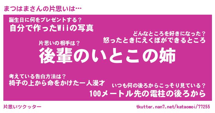 | 2回繰り返すあだ名 | 『まつまつ』『ままつつ』『ぬめぬめ』 |