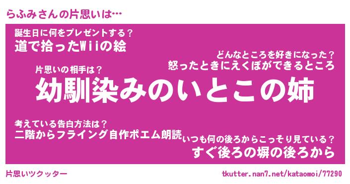 | ヘコむあだ名 | 『らふもー』『豆乳』『らふっ子』 |