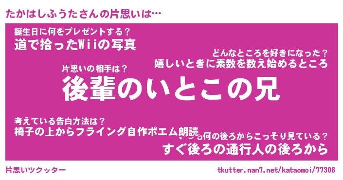 | 胡散臭い通販商品みたいなあだ名 | 『モテモテ間違いなし水晶球…その名も「たかはしふうた」』 |