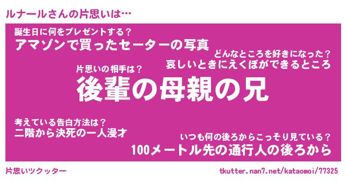 | ヘコむあだ名 | 『ルナにー』『豆乳』『ルナを』 |