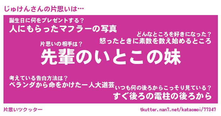 | ヘコむあだ名 | 『じゅもー』『酢こんぶ』『じゅお』 |