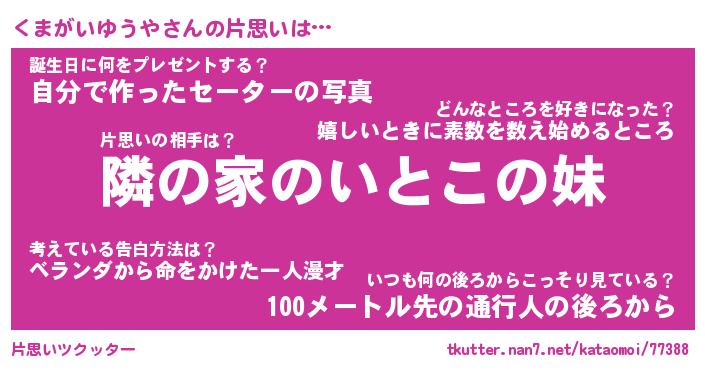 | 胡散臭い通販商品みたいなあだ名 | 『必ず成功する水晶球…その名も「くまがいゆうや」』 |