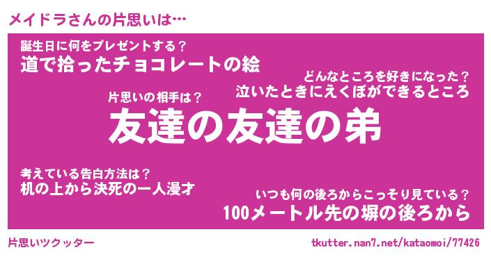 | ヘコむあだ名 | 『メイもー』『豆乳』『メイぷりん』 |
