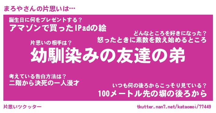 | ヘコむあだ名 | 『まろもー』『なまこ酢』『まろを』 |