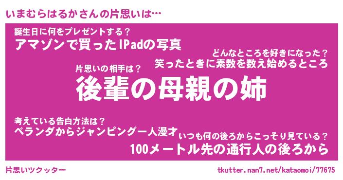 | 恥ずかしいあだ名 | 『プリティーいまむらはるか』『いまちん』 |