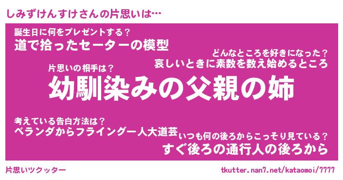 | 男性向けラノベタイトル風あだ名 | 『しみずけんすけの憂鬱』 |