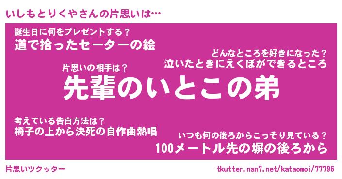 | 恥ずかしいあだ名 | 『プリティーいしもとりくや』『いしちん』 |