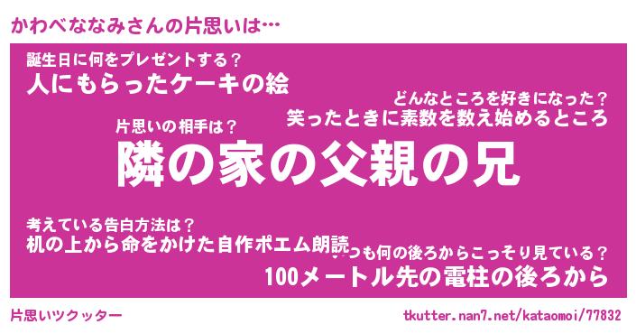 | 胡散臭い通販商品みたいなあだ名 | 『モテモテ間違いなし水晶球…その名も「かわべななみ」』 |