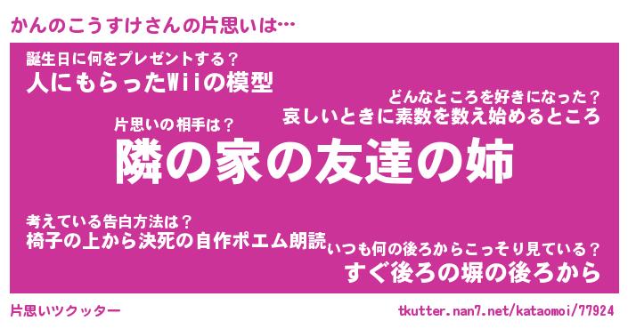 | 男性向けラノベタイトル風あだ名 | 『かんのこうすけの憂鬱』 |