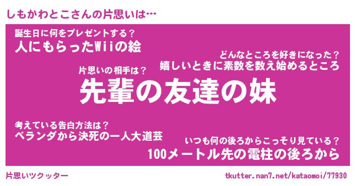 | 意味不明あだ名 | 『ペロリンしもかわとこ』 |