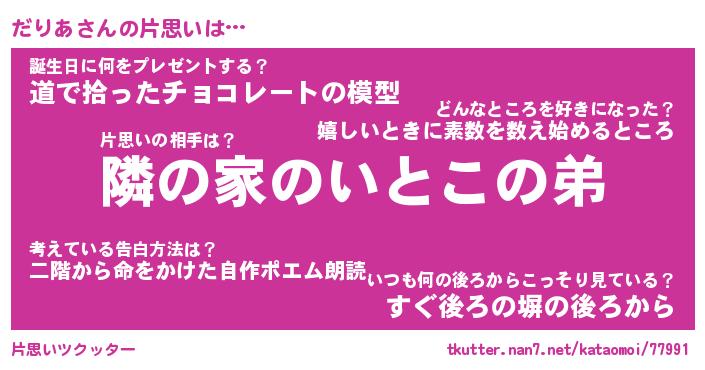 | 胡散臭い通販商品みたいなあだ名 | 『モテモテ間違いなし水晶球…その名も「だりあ」』 |