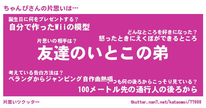 | ヘコむあだ名 | 『ちゃにゅー』『つくし』『ちゃ太郎』 |