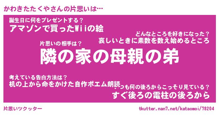 | 胡散臭い通販商品みたいなあだ名 | 『必ず成功するブレスレット…その名も「かわきたたくや」』 |