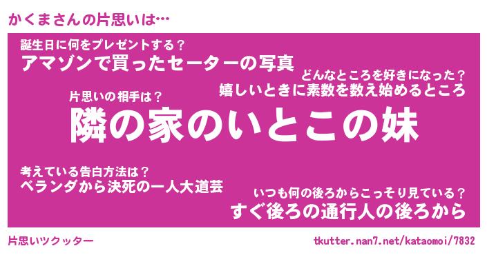 | 意味不明あだ名 | 『ペロリンかくま』『かくまフォーエバー』 |