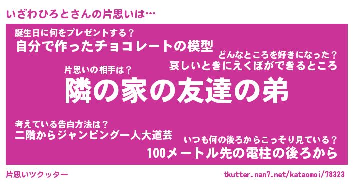 | 胡散臭い通販商品みたいなあだ名 | 『モテモテ間違いなし霊験あらたかなお札…その名も「いざわひろと」』 |