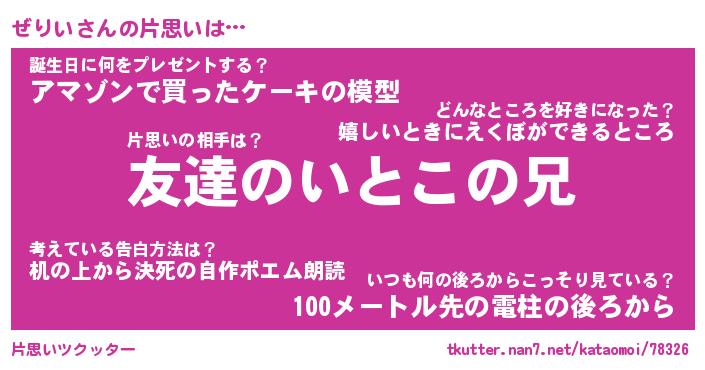 | ファンタジー風あだ名 | 『ゼリフェル』『エターナルゼリイー』 |