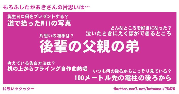 | 意味不明あだ名 | 『ペロリンもろふしたかあき』 |