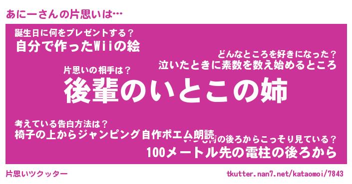 | ヘコむあだ名 | 『あにもー』『つくし』『あにお』 |