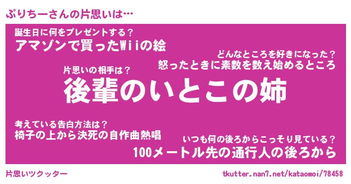 | ヘコむあだ名 | 『ぷりにゅー』『なまこ酢』『ぷりお』 |