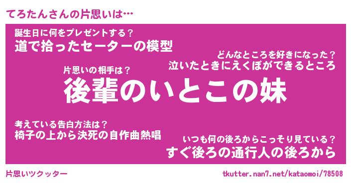 | 意味不明あだ名 | 『ペロリンてろたん』『永久保存てろたん』 |