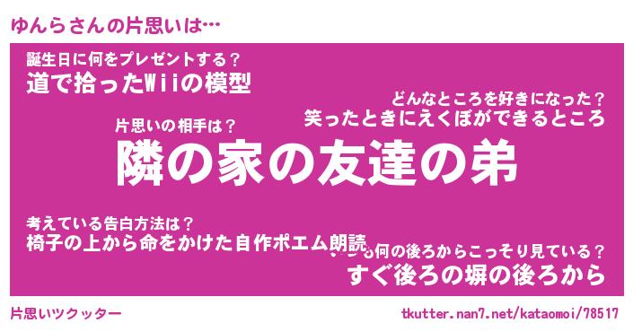 | 胡散臭い通販商品みたいなあだ名 | 『モテモテ間違いなし霊験あらたかなお札…その名も「ゆんら」』 |