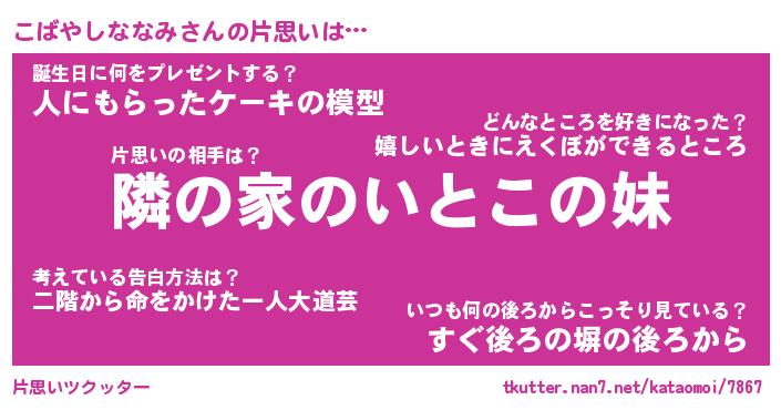 | 恥ずかしいあだ名 | 『プリティーこばやしななみ』『こばちん』 |