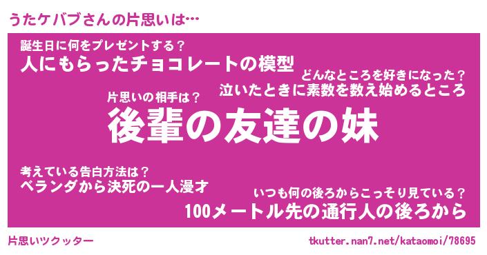 | ファンタジー風あだ名 | 『ウタフェル』『エターナルウタケバブー』 |