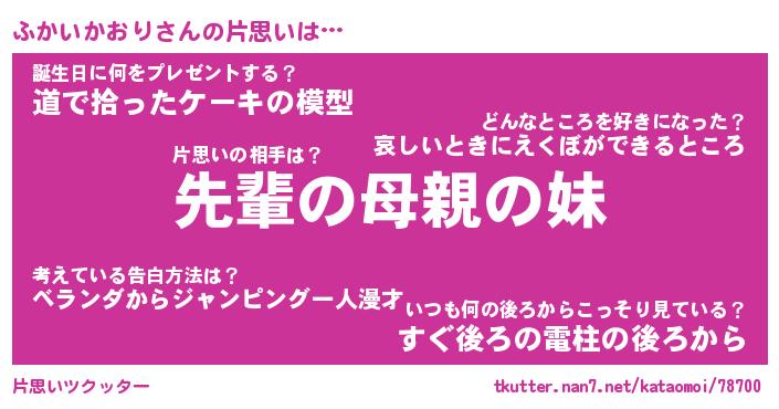 | ヒーロー風カッコイイあだ名 | 『スーパーフカイカオリ』『魔戒騎士フカ』 |