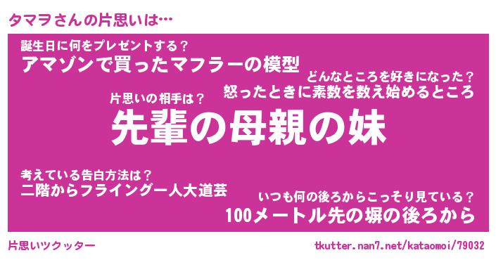 | 男性向けラノベタイトル風あだ名 | 『タマヲの憂鬱』 |