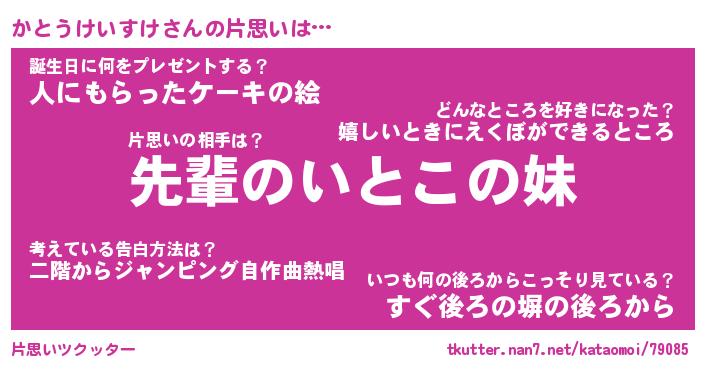 | 男性向けラノベタイトル風あだ名 | 『かとうけいすけの憂鬱』 |