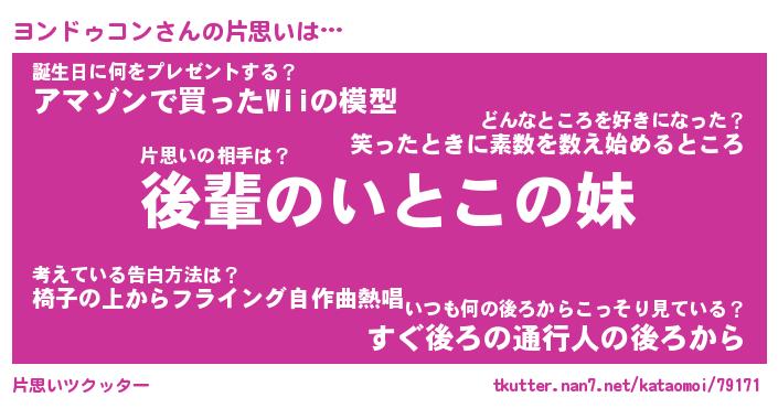 | ヘコむあだ名 | 『ヨンにゅー』『酢こんぶ』 |