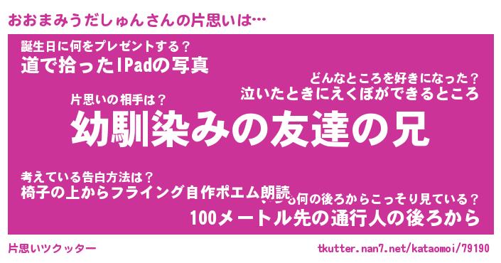 | 胡散臭い通販商品みたいなあだ名 | 『必ず成功する霊験あらたかなお札…その名も「おおまみうだしゅん」』 |