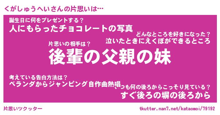 | 欧米人風あだ名 | 『マイケルくがしゅうへい』 |