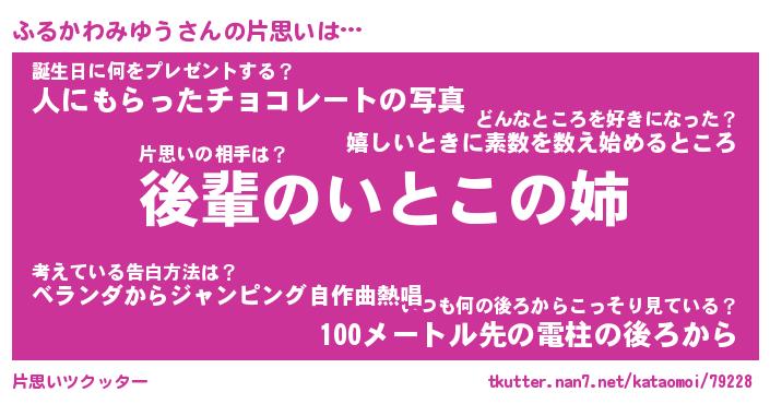 | 女子向けラノベタイトル風あだ名 | 『誰かこのふるかわみゆうを説明してください! ~契約から始まるウェディング~』 |
