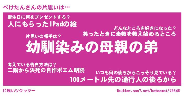 | 意味不明あだ名 | 『ペロリンぺけたん』『永久保存ぺけたん』 |