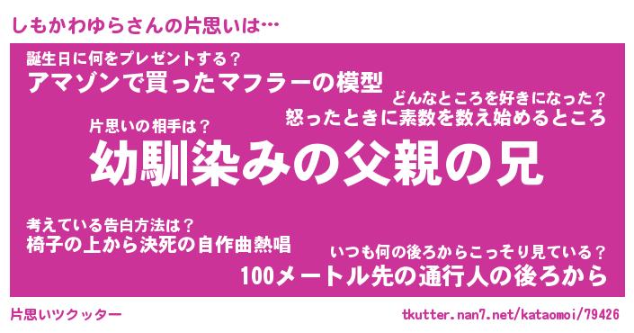 | 胡散臭い通販商品みたいなあだ名 | 『必ず成功する水晶球…その名も「しもかわゆら」』 |