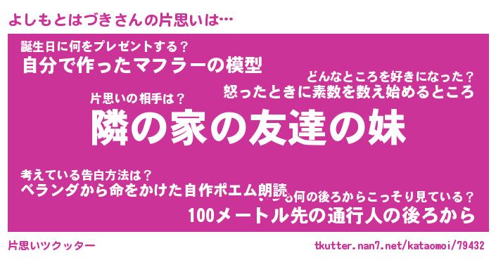 | 伝説のあだ名 | 『伝説のスナイパーよしもとはづき』 |