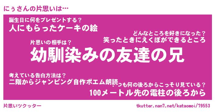 | ヘコむあだ名 | 『にぅっふぃ~』『つくし』『にぅお』 |