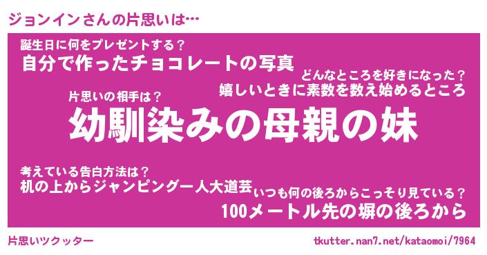 | 女子向けラノベタイトル風あだ名 | 『(仮)ジョンインのやんごとなき事情』 |