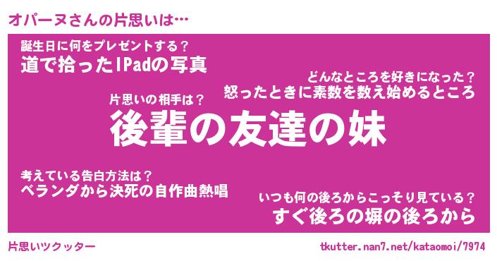 | ヘコむあだ名 | 『オパっふぃ~』『豆乳』『オパっぺ』 |