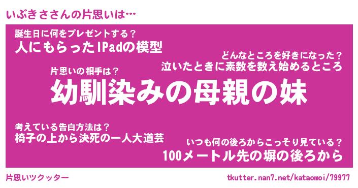 | 胡散臭い通販商品みたいなあだ名 | 『必ず成功するブレスレット…その名も「いぶきさ」』 |