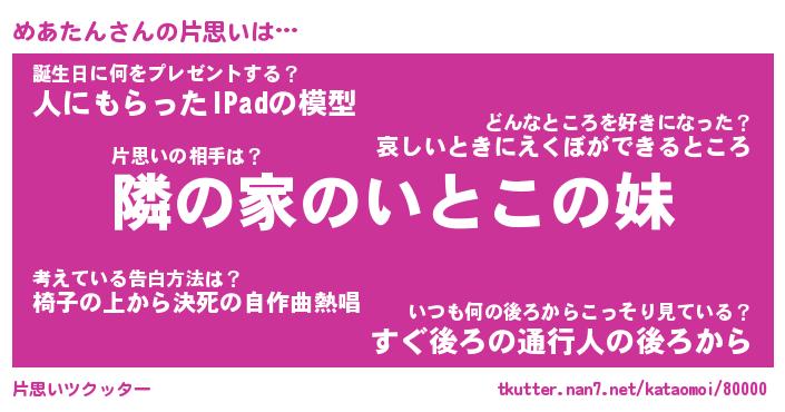 | 意味不明あだ名 | 『ペロリンめあたん』『永久保存めあたん』 |