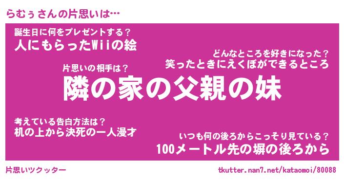 | 胡散臭い通販商品みたいなあだ名 | 『モテモテ間違いなし水晶球…その名も「らむぅ」』 |