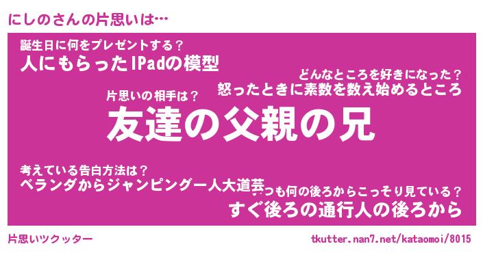 | 胡散臭い通販商品みたいなあだ名 | 『億万長者になれるブレスレット…その名も「にしの」』 |