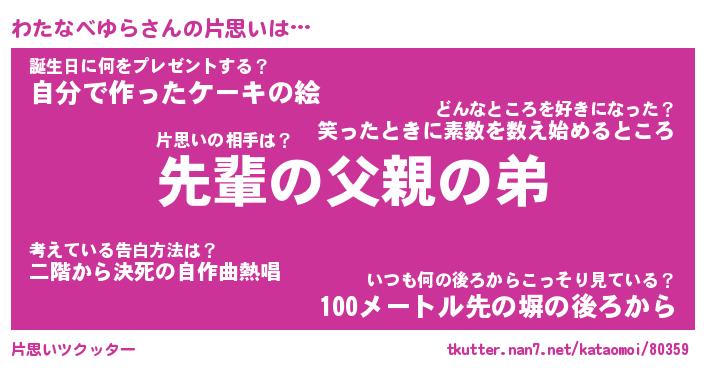| ヒーロー風カッコイイあだ名 | 『スーパーワタナベユラ』『暗黒騎士ワタ』 |